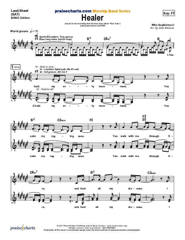 Get the Deals now. Worship Artistry offers custom built video tutorials for Healer with transposable tabs sheet music chord charts interactive videos practice mixes loops for guitar bass drums keys. F F You hold every moment B C F You calm my raging seas F CF Ebm You walk with me through fire B C And heal all my disease Pre Chorus Soft Ab Bbm B I trust in You Ab B.